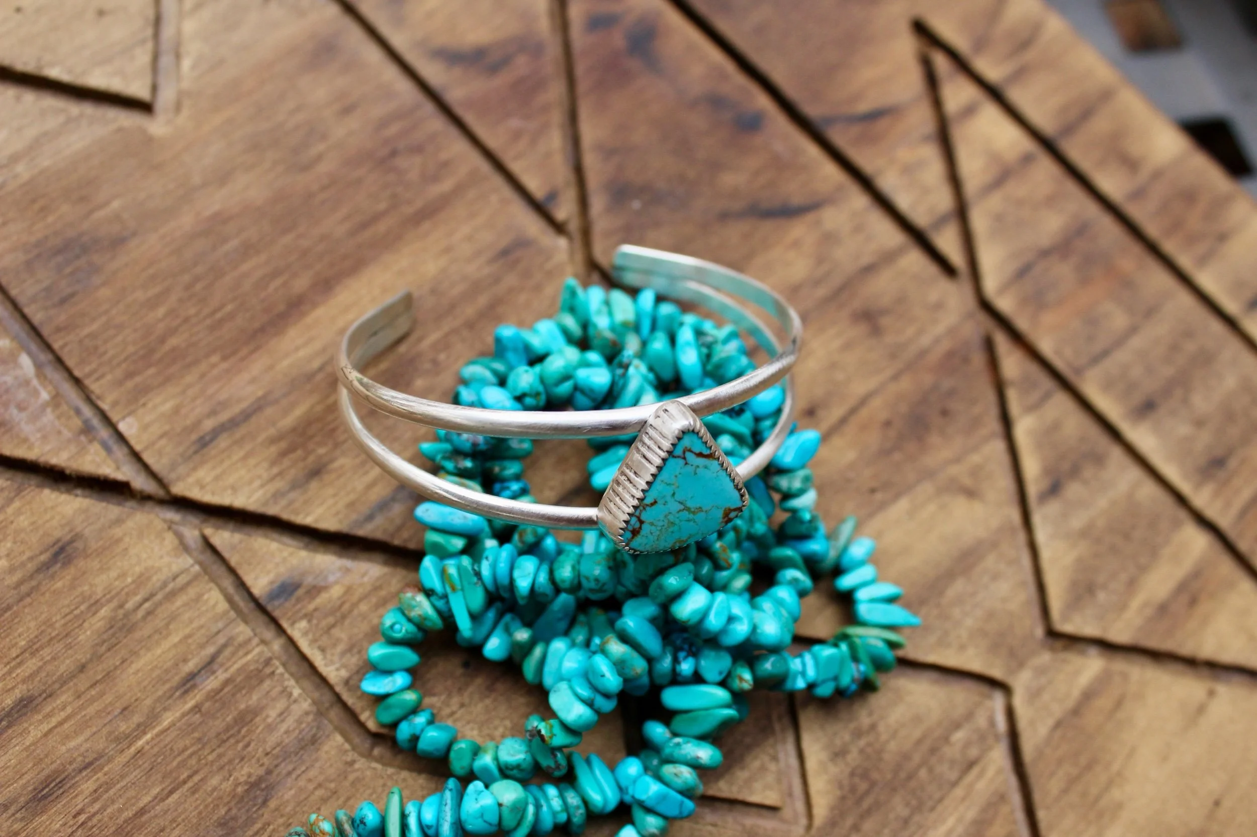 Bracelets & Cuffs › Cuff Image 1 of 3 Image 2 of 3 Image 3 of 3 Cuff $160.00 Handmade Double Cuff.925 Sterling Silver Kingman StoneHand-Hammered/Stamped Patina Finish Add To Cart Added! Handmade Double Cuff.925 Sterling Silver Kingman StoneHand-Hammered/Stamped Patina Finish Reviews Reviewer Name Review Date Star Rating Description Posted on Etsy Product Show More