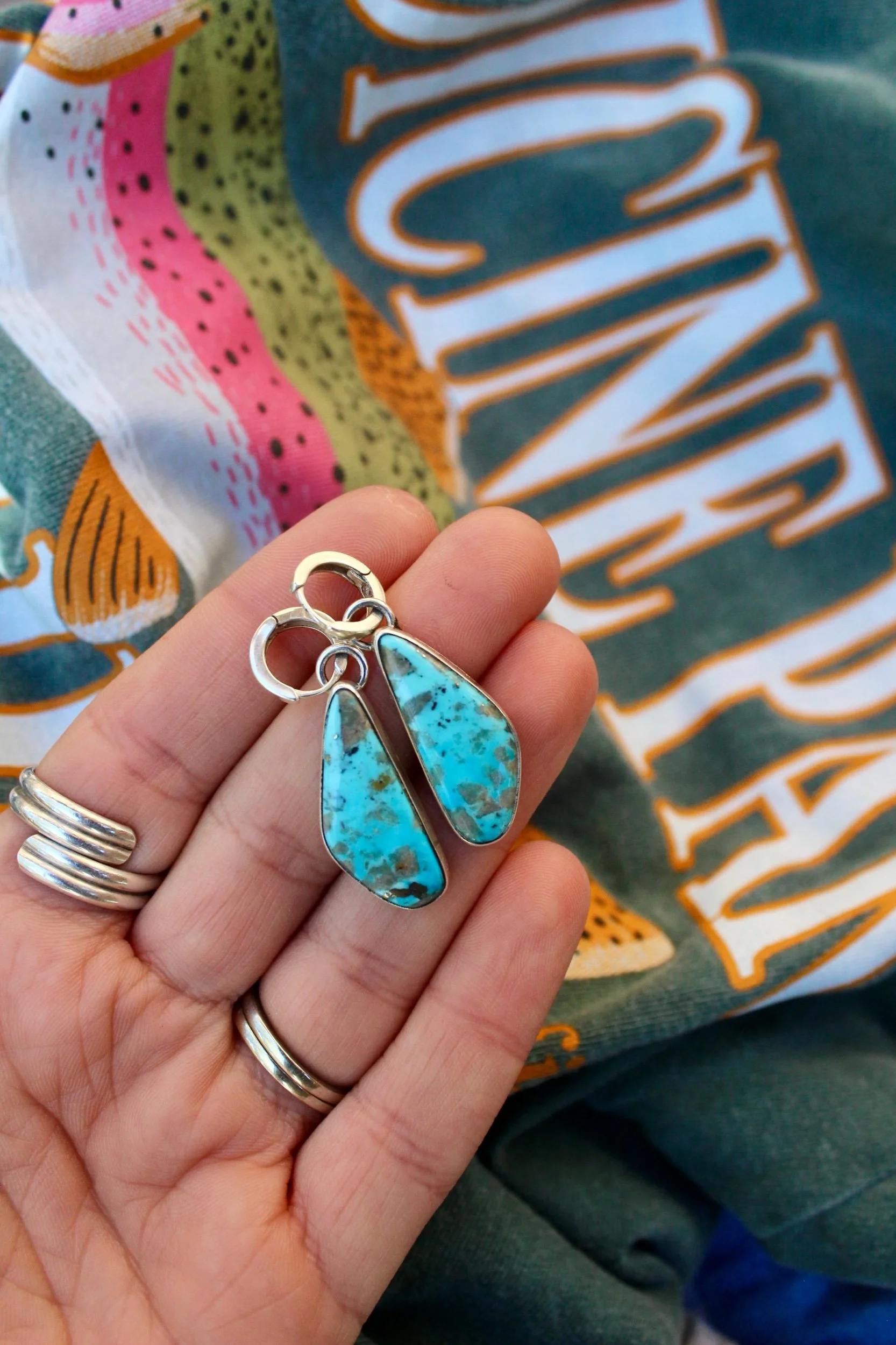 Handmade Charms hung on huggie earrings, can be removed; huggies can be worn without charms