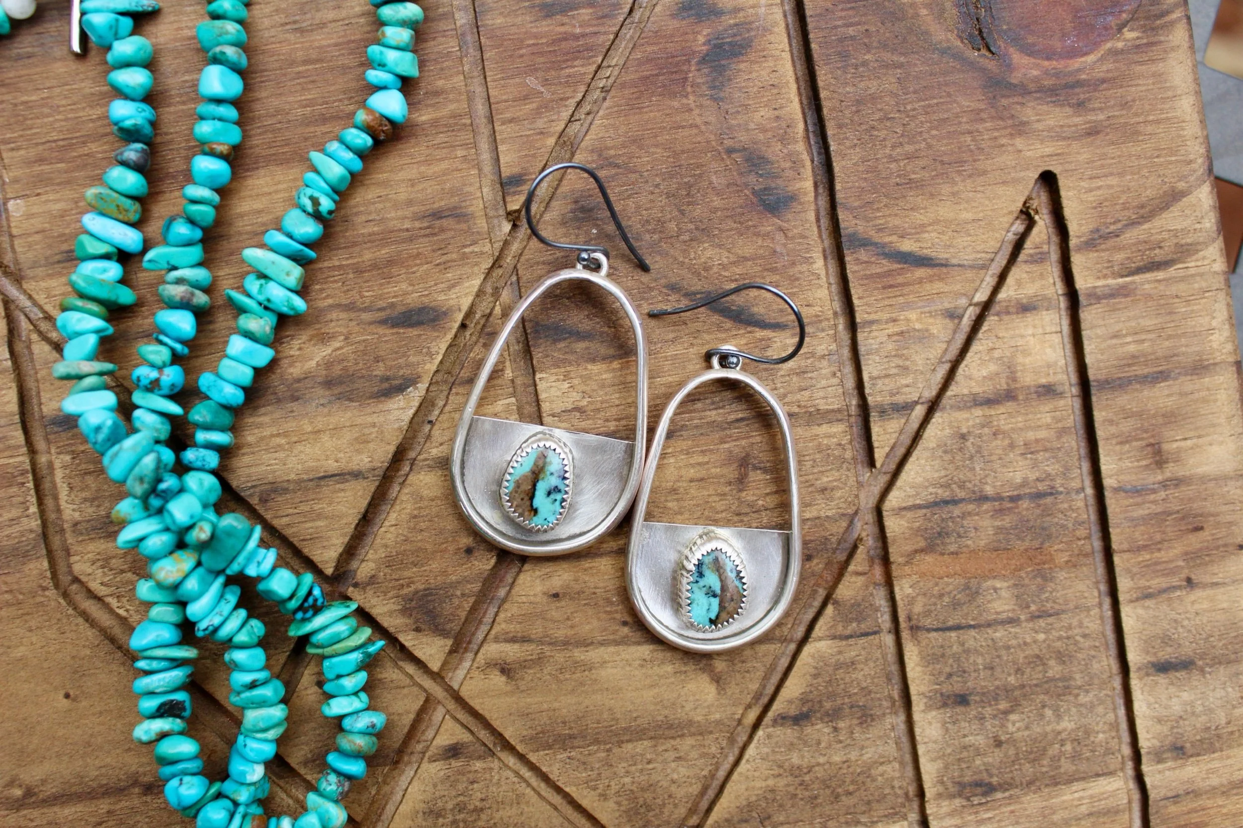 Earrings › Dangle Earrings Image 1 of 4 Image 2 of 4 Image 3 of 4 Image 4 of 4 Dangle Earrings $155.00 Handmade Earrings.925 Sterling Silver Kingman Stones Hand-Hammered/Stamped Patina Finish Add To Cart Added! Handmade Earrings.925 Sterling Silver Kingman Stones Hand-Hammered/Stamped Patina Finish Reviews Reviewer Name Review Date Star Rating Description Posted on Etsy Product Show More