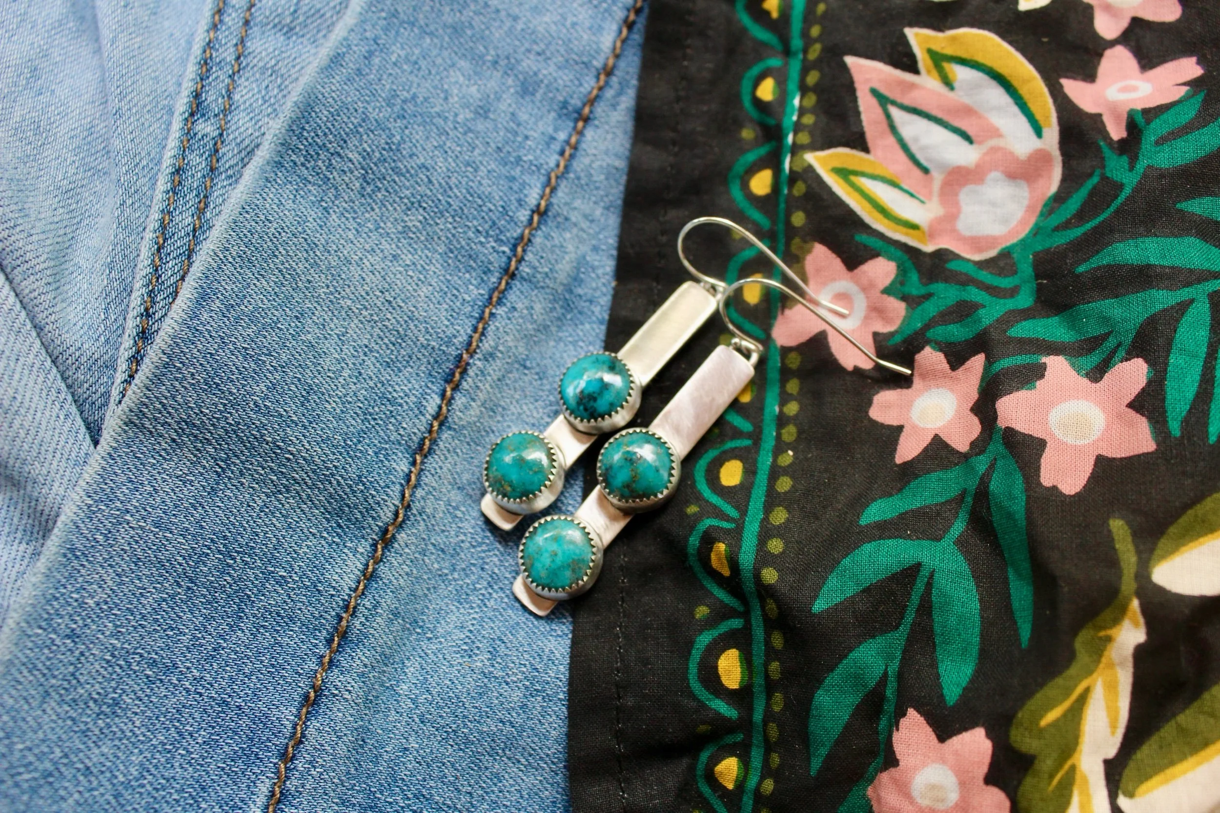 Earrings › Dangles Image 1 of 5 Image 2 of 5 Image 3 of 5 Image 4 of 5 Image 5 of 5 Dangles $160.00 sold out Handmade Bar EarringsKingman Stones.925 Sterling Silver Sterling hooks Sold Out Added! Handmade Bar EarringsKingman Stones.925 Sterling Silver Sterling hooks Reviews Reviewer Name Review Date Star Rating Description Posted on Etsy Product Show More