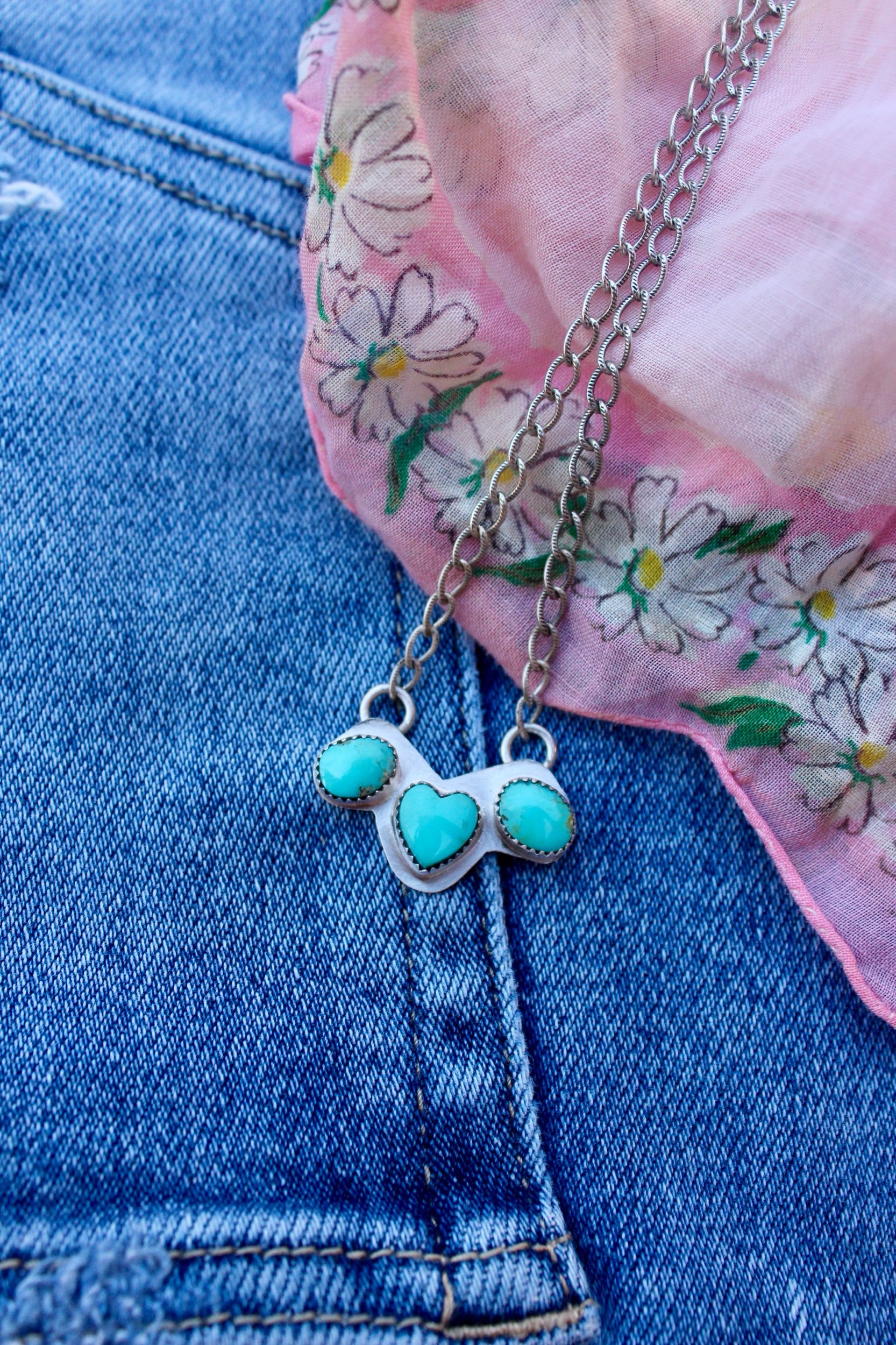 Necklaces › Mini Heart Bar Image 1 of 5 Image 2 of 5 Image 3 of 5 Image 4 of 5 Image 5 of 5 Mini Heart Bar $150.00 Handmade Pendant Necklace .925 Sterling Silver Kingman StonesAttached chain 18” length Add To Cart Added! Handmade Pendant Necklace .925 Sterling Silver Kingman StonesAttached chain 18” length Reviews Reviewer Name Review Date Star Rating Description Posted on Etsy Product Show More