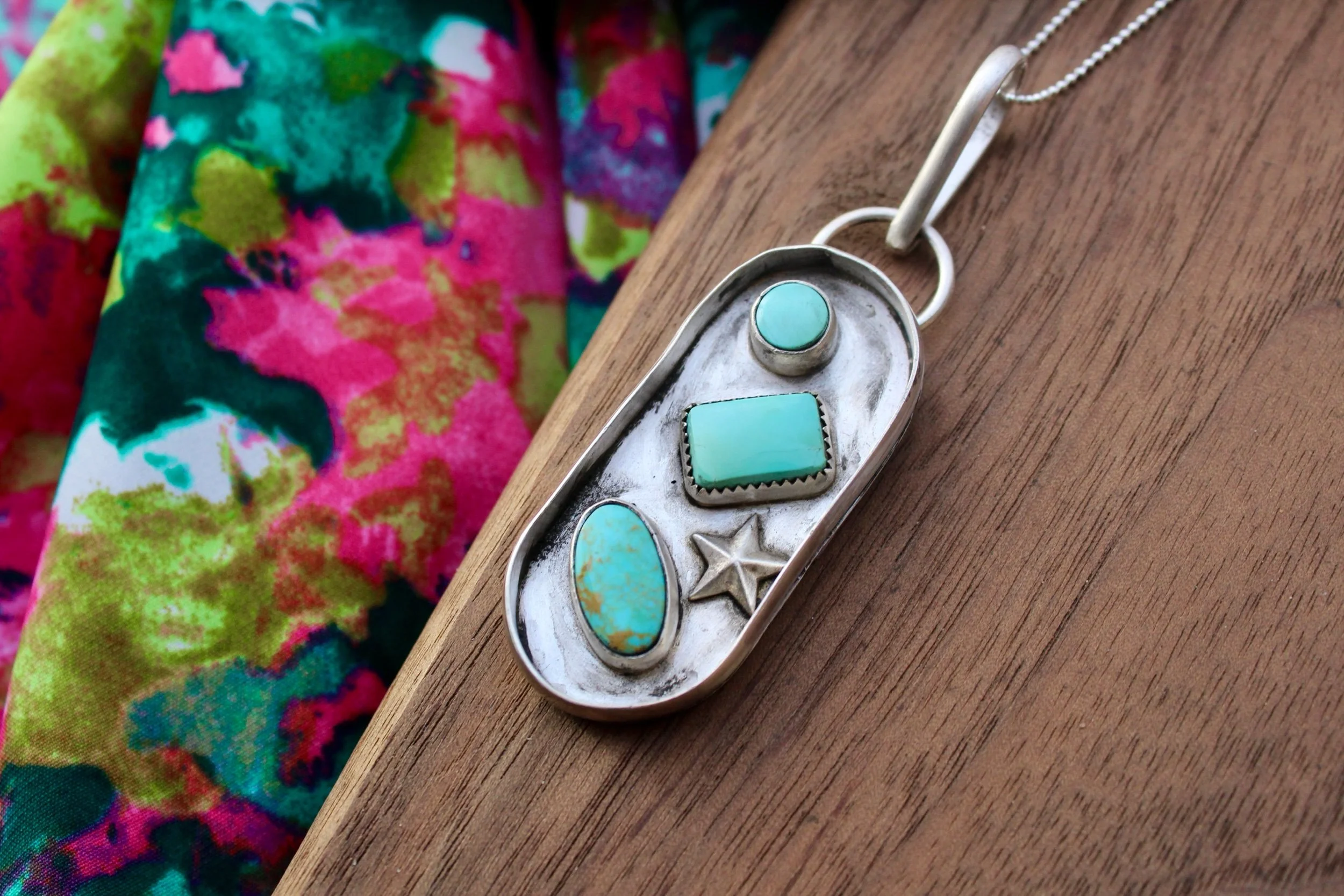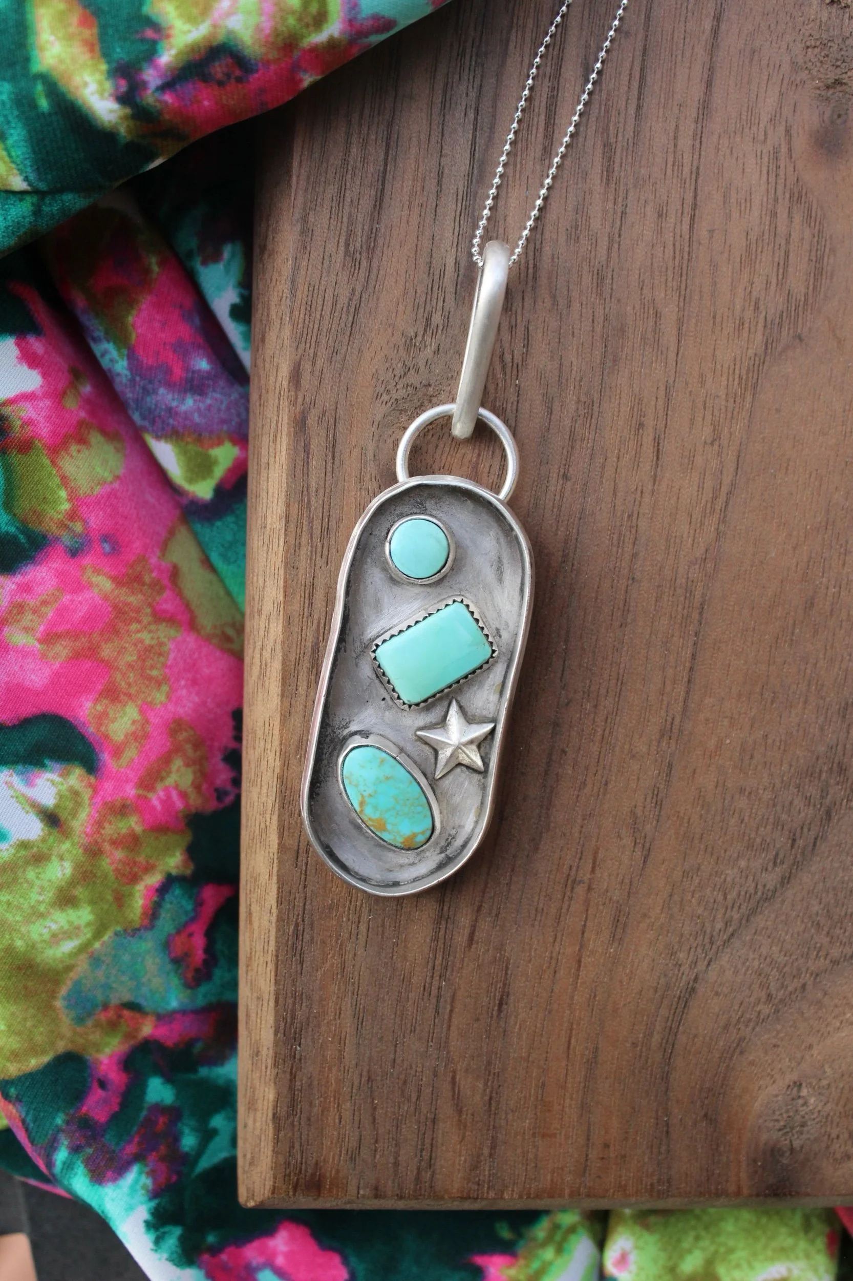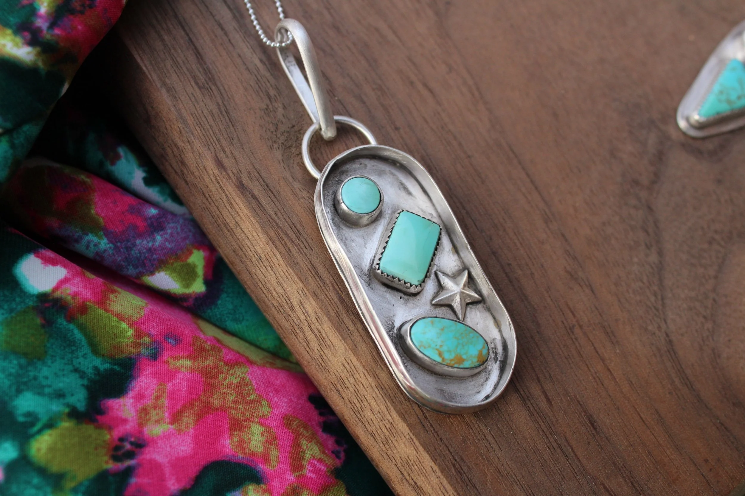 Necklaces › Payne Image 1 of 5 Image 2 of 5 Image 3 of 5 Image 4 of 5 Image 5 of 5 Payne $155.00 Handmade Pendant .925 Sterling Silver Kingman Turquoise Hand-StampedEmbellished StarPatina Finish Add To Cart Added! Handmade Pendant .925 Sterling Silver Kingman Turquoise Hand-StampedEmbellished StarPatina Finish Reviews Reviewer Name Review Date Star Rating Description Posted on Etsy Product Show More