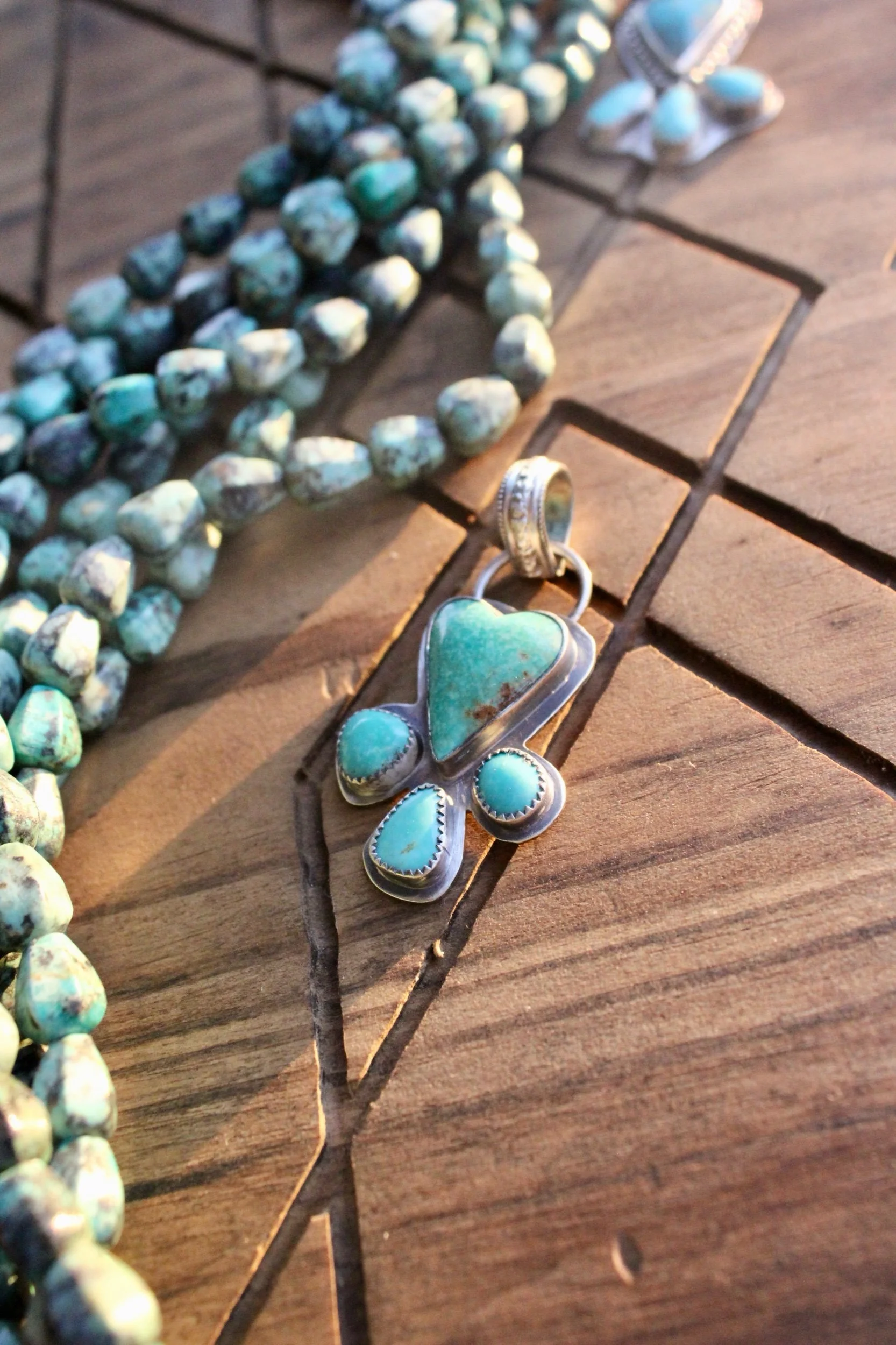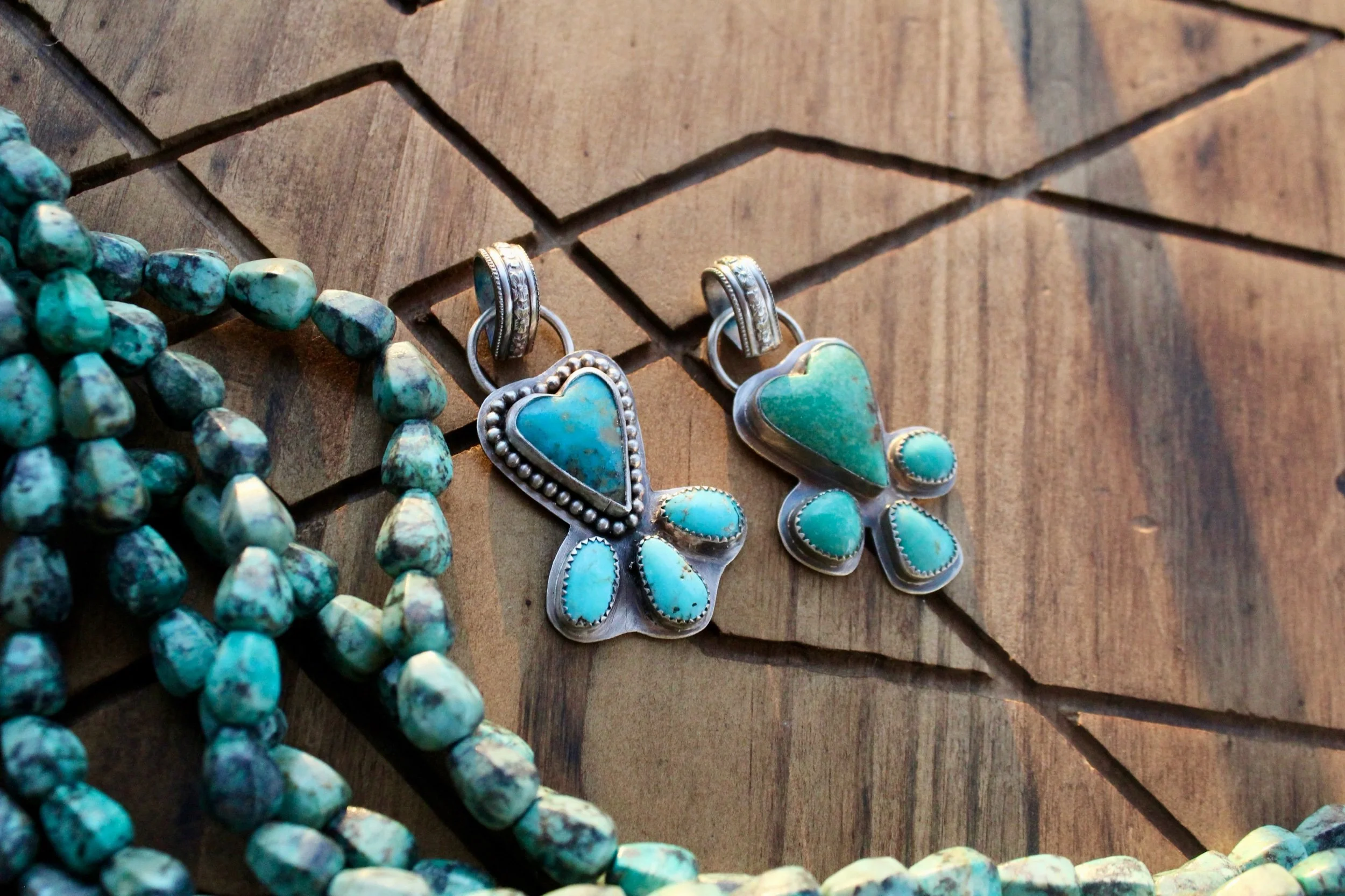 Necklaces › Heart Throb Image 1 of 9 Image 2 of 9 Image 3 of 9 Image 4 of 9 Image 5 of 9 Image 6 of 9 Image 7 of 9 Image 8 of 9 Image 9 of 9 Heart Throb $195.00 sold out Handmade Pendant.925 Sterling SilverKingman and Campitos StonesSlight EdgePatina FinishFloral Bail Sold Out Added! Handmade Pendant.925 Sterling SilverKingman and Campitos StonesSlight EdgePatina FinishFloral Bail Reviews Reviewer Name Review Date Star Rating Description Posted on Etsy Product Show More