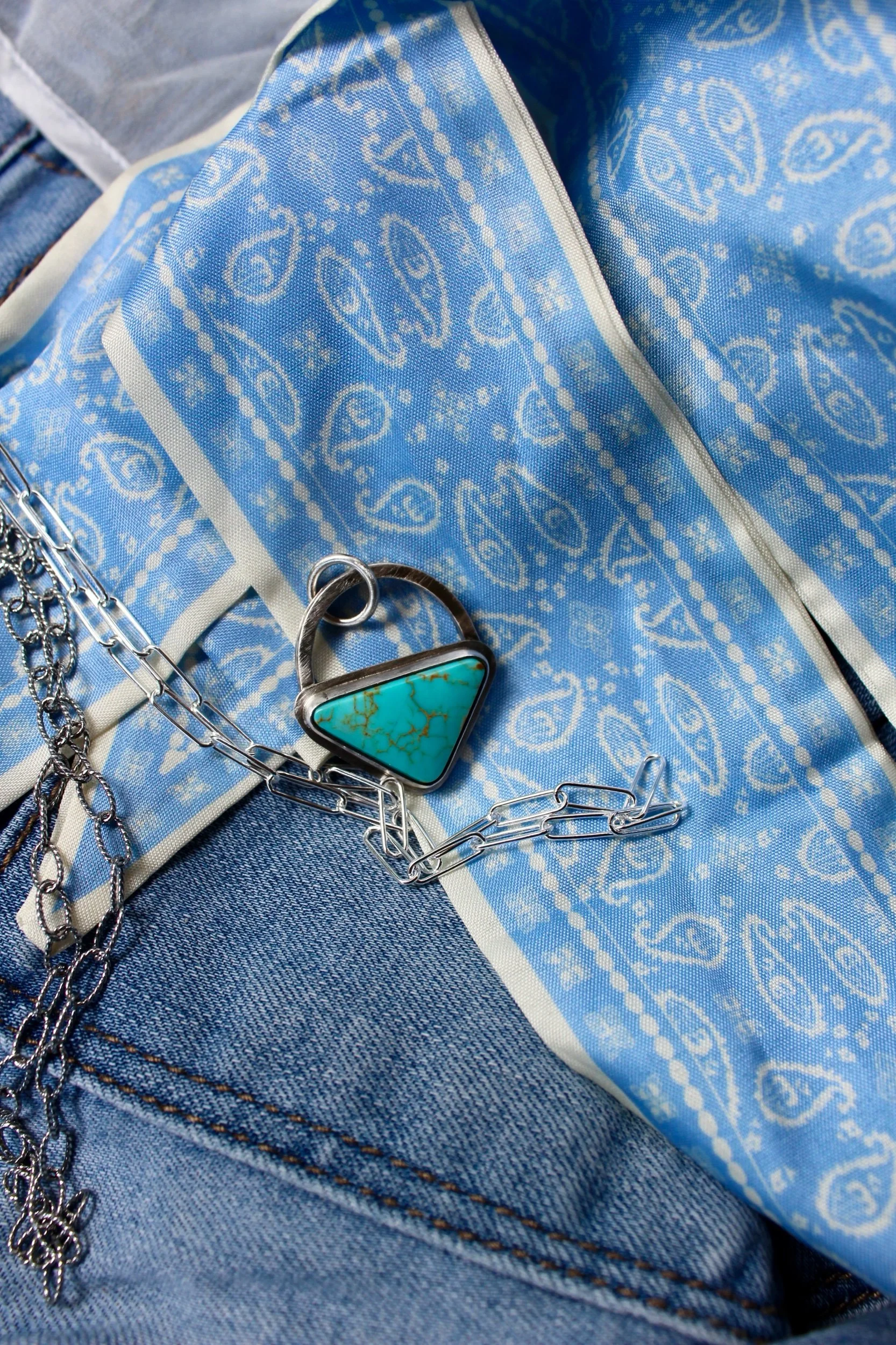 Necklaces › Black Gold Image 1 of 5 Image 2 of 5 Image 3 of 5 Image 4 of 5 Image 5 of 5 Black Gold $135.00 Handmade Pendant Slight edge with a Aztec square accent Kings Manassa Turquoise Stone .925 Sterling Silver Add To Cart Added! Handmade Pendant Slight edge with a Aztec square accent Kings Manassa Turquoise Stone .925 Sterling Silver Reviews Reviewer Name Review Date Star Rating Description Posted on Etsy Product Show More