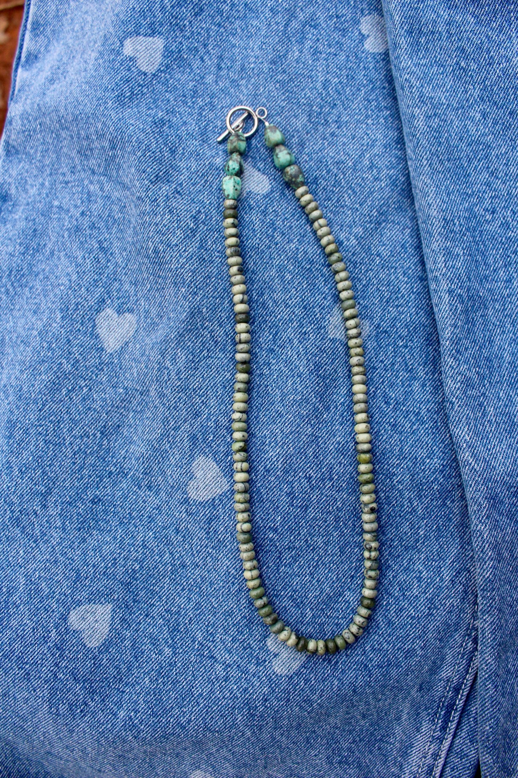 Necklaces › Beaded Image 1 of 4 Image 2 of 4 Image 3 of 4 Image 4 of 4 Beaded $35.00 Hand-Beaded Necklace Jasper Beads19” total length Toggle clasp finish Add To Cart Added! Hand-Beaded Necklace Jasper Beads19” total length Toggle clasp finish Reviews Reviewer Name Review Date Star Rating Description Posted on Etsy Product Show More