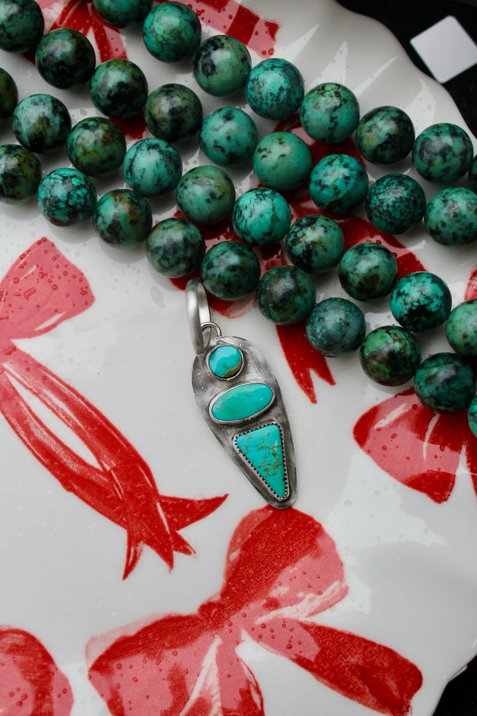 Necklaces › Ellis Image 1 of 5 Image 2 of 5 Image 3 of 5 Image 4 of 5 Image 5 of 5 Ellis $155.00 Handmade Pendant .925 Sterling Silver Kings Manassa Turquoise Patina Finish Add To Cart Added! Handmade Pendant .925 Sterling Silver Kings Manassa Turquoise Patina Finish Reviews Reviewer Name Review Date Star Rating Description Posted on Etsy Product Show More