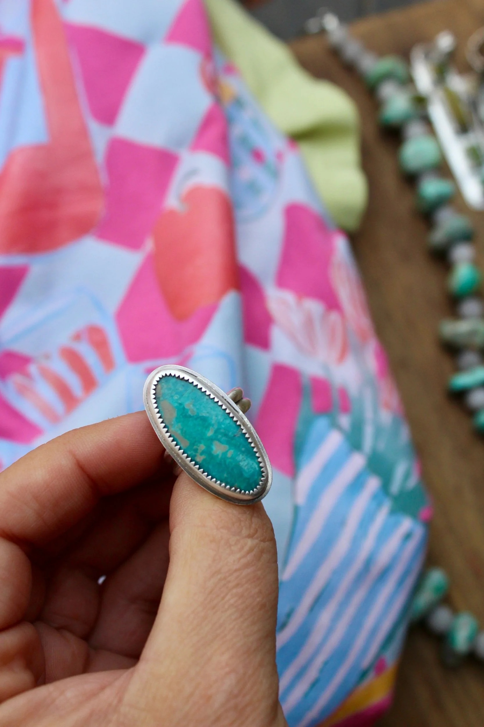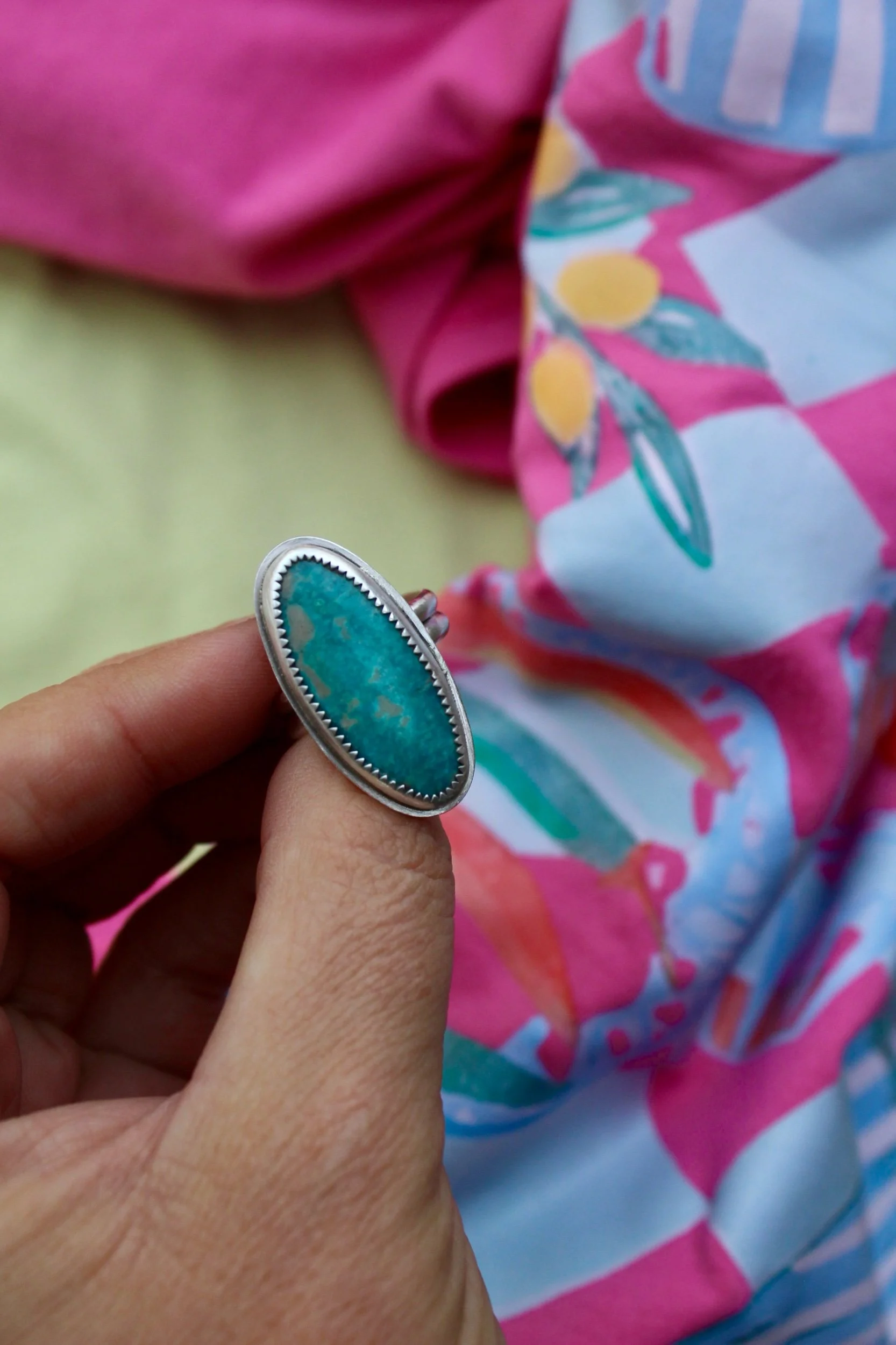 Rings › Night Out Image 1 of 5 Image 2 of 5 Image 3 of 5 Image 4 of 5 Image 5 of 5 Night Out $120.00 Handmade Ring.925 Sterling Silver Fox Mine Stone Adjustable SizeSlight EdgePatina Finish Add To Cart Added! Handmade Ring.925 Sterling Silver Fox Mine Stone Adjustable SizeSlight EdgePatina Finish Reviews Reviewer Name Review Date Star Rating Description Posted on Etsy Product Show More