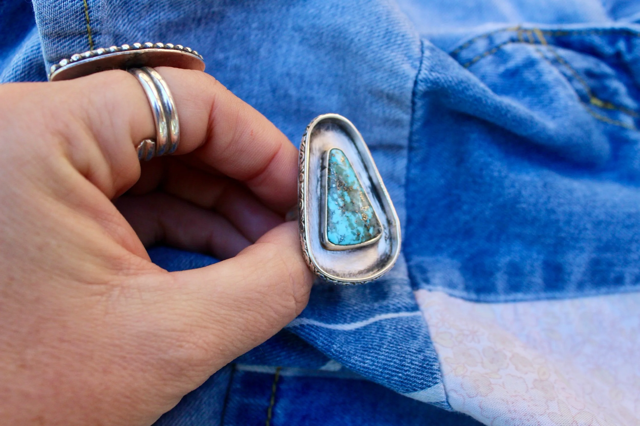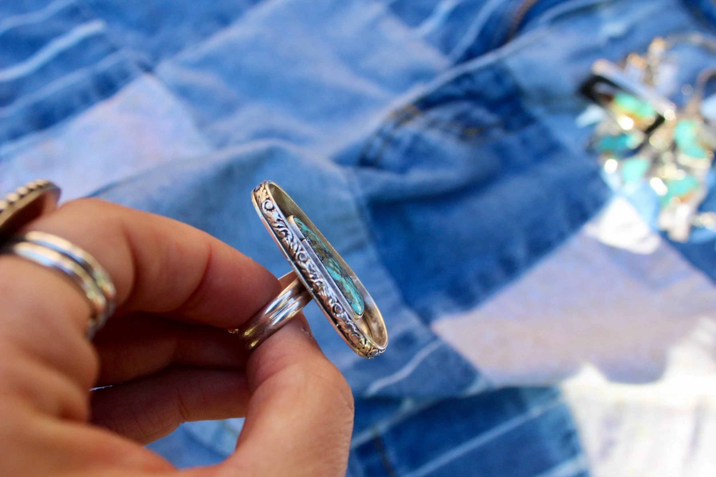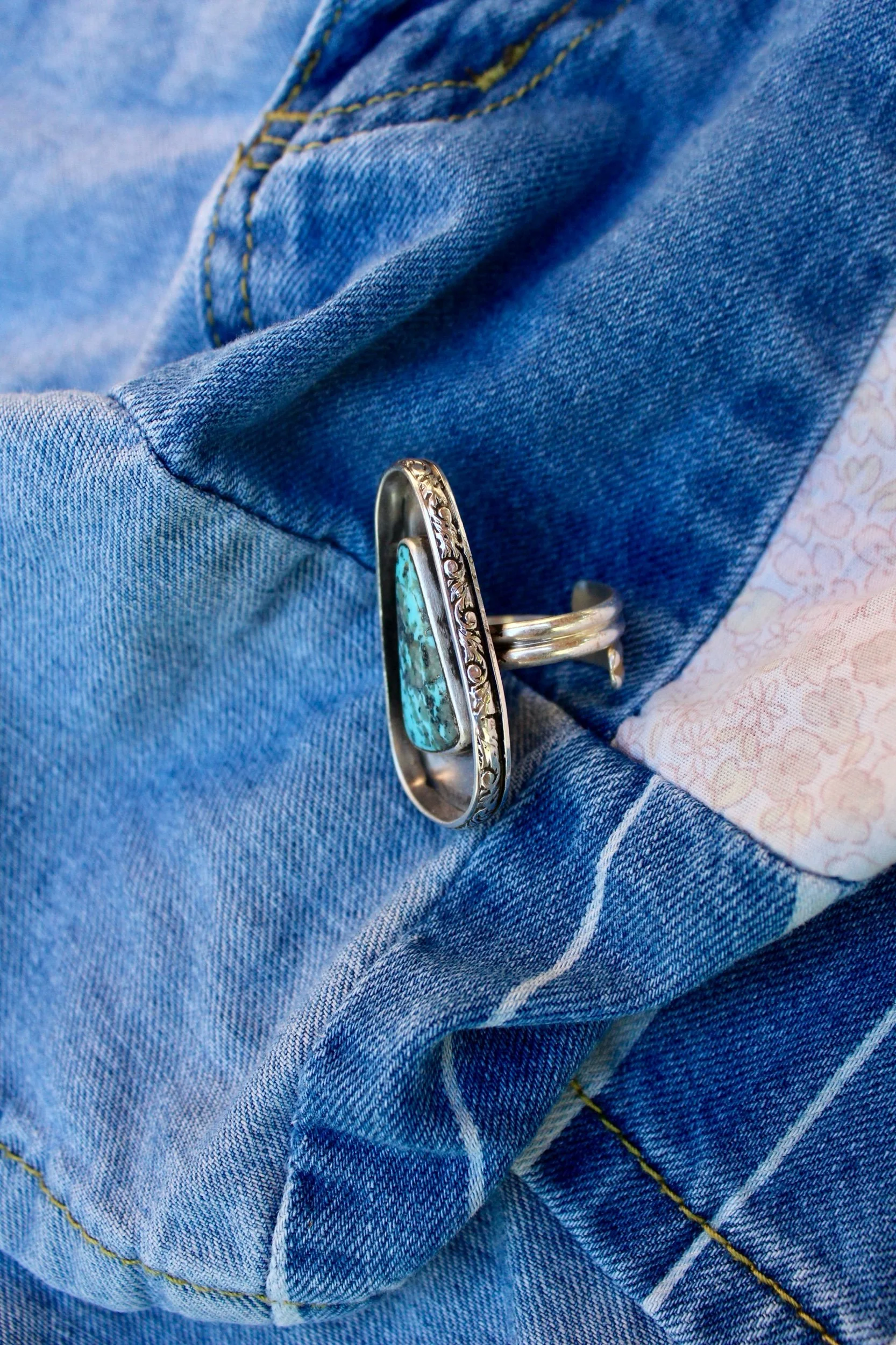 Rings › Dig Deep Image 1 of 11 Image 2 of 11 Image 3 of 11 Image 4 of 11 Image 5 of 11 Image 6 of 11 Image 7 of 11 Image 8 of 11 Image 9 of 11 Image 10 of 11 Image 11 of 11 Dig Deep $160.00 Handmade Ring.925 Sterling Silver Nakozari StoneFloral Pattern Border Adjustable Size Patina darkened finish Add To Cart Added! Handmade Ring.925 Sterling Silver Nakozari StoneFloral Pattern Border Adjustable Size Patina darkened finish Reviews Reviewer Name Review Date Star Rating Description Posted on Etsy Product Show More