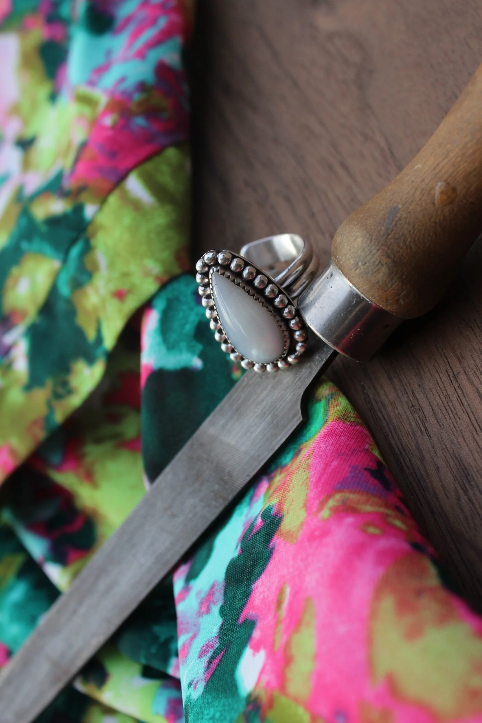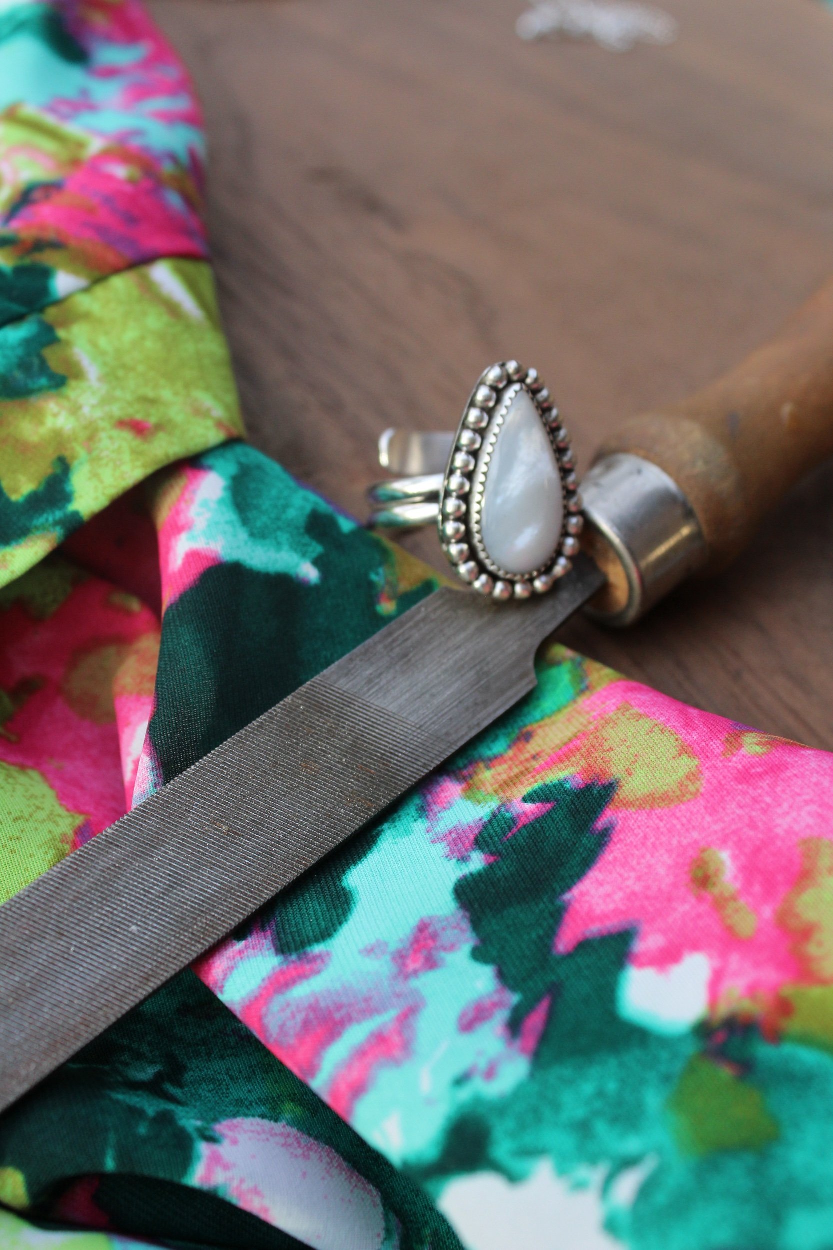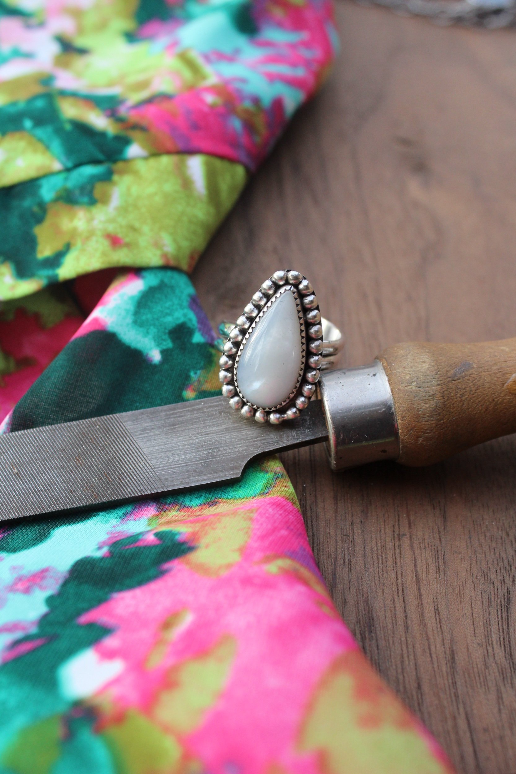 Rings › Pearl Image 1 of 5 Image 2 of 5 Image 3 of 5 Image 4 of 5 Image 5 of 5 Pearl $155.00 sold out Handmade Ring .925 Sterling Silver Adjustable SizeMother of Pearl StoneBold Beaded Border Sold Out Added! Handmade Ring .925 Sterling Silver Adjustable SizeMother of Pearl StoneBold Beaded Border Reviews Reviewer Name Review Date Star Rating Description Posted on Etsy Product Show More